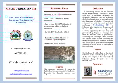 The GeoKurdistan conference established in 2012. Over the years, this conference has progressed into a foremost platform for scholars, researchers, and professionals to meet, share insights, and contribute to the advancement of Earth science related topics.