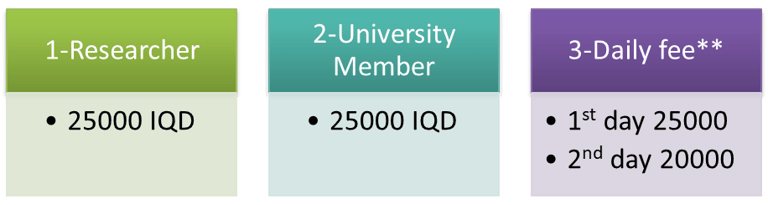 The registration fee includes 2, 3: Conference attendance, program booklet, certificate of attendance, Lunch break, Coffee break and Field trip excluded.